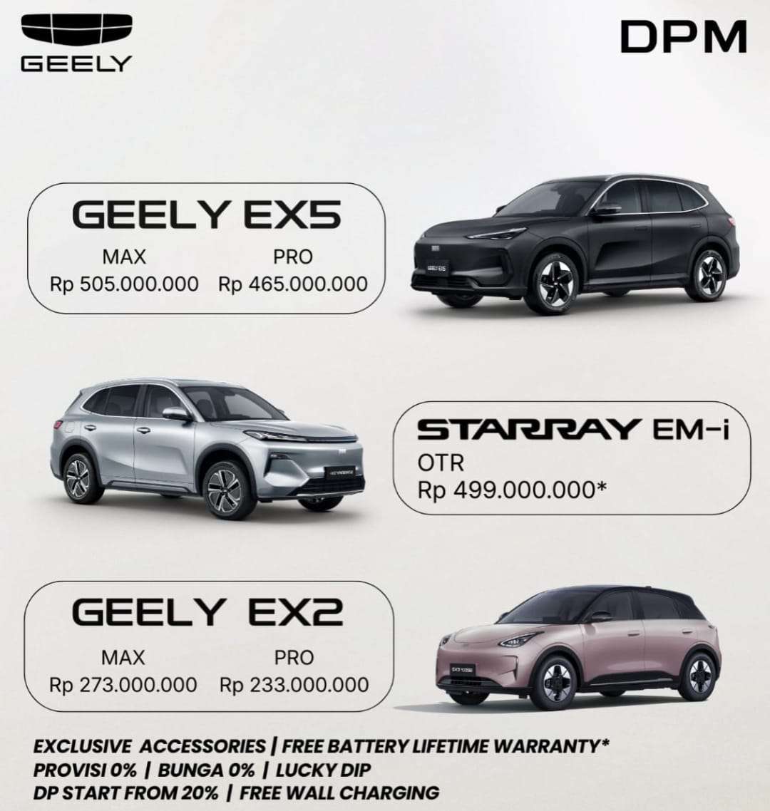 Cek Paket Harga Kredit mobil Geely DP dan Cicilan Murah di Dealer mobil Geely Kebayoran Lama . Kami juga melayani tukar tambah mobil lama anda dengan mobil baru Geely, penawaran harga tertinggi, jujur, aman dan transparan.